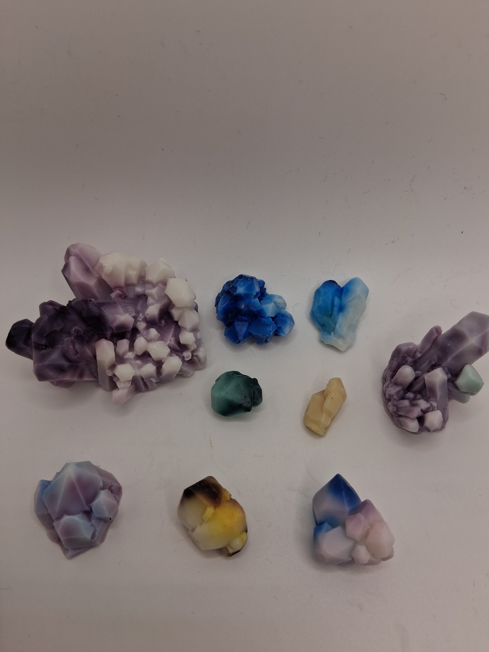 9 beautiful coloured small crystal wax melts fragranced in Rest. I use KeraSoy wax for my wax melts which carry the scent wonderfully. If you like crystals then these unique wax melts are for you! In this fragrance they they are designed to help you unwind, recover and relax. A good scent for meditation or yoga.